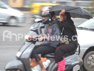 Photo Caption : People seen covering themselves with umbrellas as Bengaluru City witnessed rainfall in the early morning as dark clouds were hovering over the Bengaluru City , in Bengaluru on Thursday 23rd June 2016