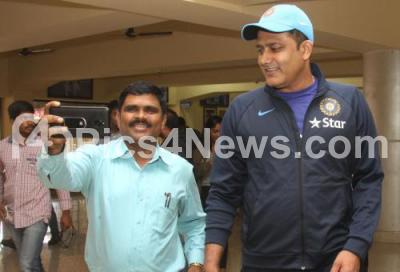 Photo Caption : Anil Kumble, India Cricket Team head coach, acknowledged to take a picture with his fan during the Indian cricket team preparatory camp before its tour to West Indies at Chinnaswamy Stadium, in Bengaluru on Wednesday 29th June 2016