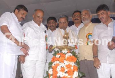 Photo Caption : CM Siddaramaiah with Ministers DK Shivakumar, A Manju ad others inaugurated the Hoskote Diary manufacturing unit and laid foundation stone for market office at Bangalore Diary Premises, in Bengaluru on Thursday 30th June 2016