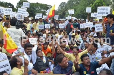 Photo Caption : Members of Karnataka Photographers Association seen protesting to fulfill their various demands at Freedom Park, in Bengaluru on Saturday 2nd July2016