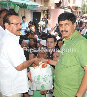 Photo Caption : Union Minister DV Sadananda Gowda distributing ration to Muslim people for the Ramzan festival at RT Nagar, also seen are MLA YA Narayana Swamy and others, in Bengaluru on Sunday 3rd July 2016