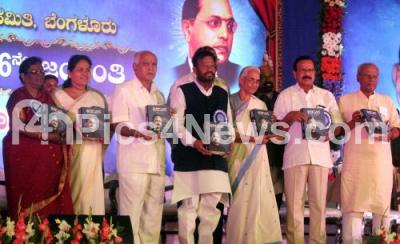 Photo Caption : BJP State President BS Yeddyurappa with Union Ministers DV Sadanada Gowda, Siddeshwar, MLC Motamma, MP Shoba Karandlaje, Former Minister BT Lalita Naik, DS Veeraiah, President, B Basavalingappa Jayanti Acharana Samiti and others releasing the book “Dheemanta" on B Basavalingappa, during his 96th Jayanthi celebrations organized by B Basavalingappa Jayanti Acharana Samiti at Palace Grounds, in Bengaluru on Sunday 3rd July 2016