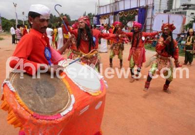 Photo Caption : Artists Cultural programme at the 96th Jayanthi celebrations of B Basavalingappa organized by B Basavalingappa Jayanti Acharana Samiti at Palace Grounds, in Bengaluru on Sunday 3rd July 2016