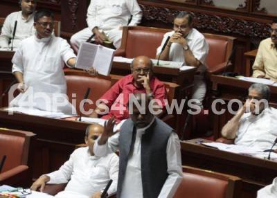 Photo Caption : Minister H Anjaneya seen arguing with MLA Ugrappa during the Council Session at Vidhan Soudha, in Bengaluru on Monday 4th July 2016
