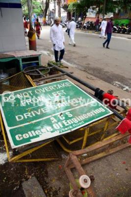 Photo Caption : A traffic name board seen dumped on footpath at Chamarajpet, in Bengaluru on Thursday 7th July 2016
