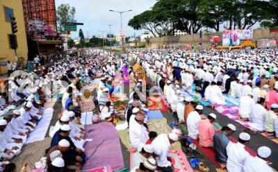 Muslim people partake in Ramzan prayer at Chamrajpet Eidgah Maidan on the occasion of Ramzan festival, in Bengaluru on Thursday 7th July 2016
