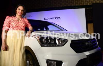 Photo Caption : Saina Nehwal Indian badminton player seen during 1st anniversary Edition of Hyundai Creta car at JW Marriot Hotel, in Bengaluru on Thursday 7th July 2016