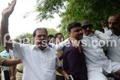 Photo Caption : Vatal Nagaraj with Sa Ra Govind and others being arrested for participating in a protest rally in front of Rajbavan, demanding for Kannada Schools, in Bengaluru on Sunday 10th July 2016
