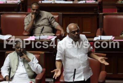 Photo Caption : Minister Ramesh Kumar addressing while the opposition were arguing about the DYSP Ganapati suicide case and demanding for the resignation of Minister KJ George during the Council Session at Vidhan Soudha, in Bengaluru on Monday 11th July 2016