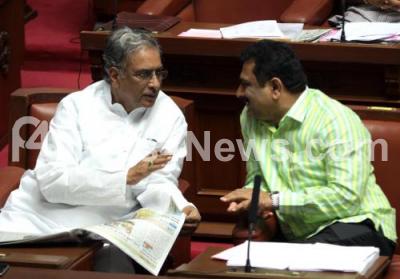 Photo Caption : JDS MLCs Basavaraj Horatti and Puttannaiah seen during Council session at Vidhana Soudha , in Bengaluru on Tuesday 12th July 2016