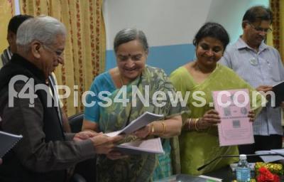 Photo Caption : Justice Shivaraj Patil with JB Raju and others seen releasing the research report on Child Marriage Study during the round table meeting at Shikshakara Sadan, organised by Samajika Parivartana Janandolana complex , in Bengaluru on Thursday 14th July 2016