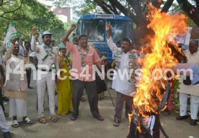 Event Description : JDU protest against the state government for the DYSP Ganapati suicide case and demanding for the resignation of Minister KJ George at SBM Circle, in Bengaluru on Thursday 14th July 2016