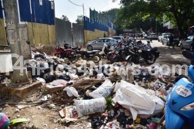 Uncleared garbage lying around church street near Empire Hotel , in Bengaluru on Thursday 14th July 2016