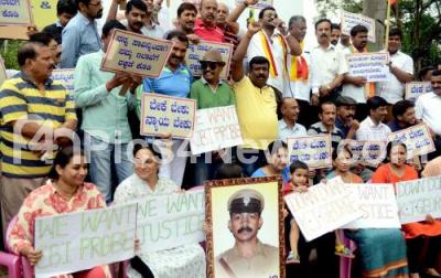 Event Description : Members of BEML Layout Welfare Association protesting and demanding the CBI investigation of suicide of DYSP Ganapati case, the protest was held at Rajarajeshwari Nagar , in Bengaluru on Sunday 17th July 2016