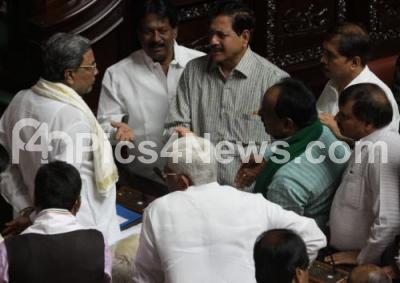 Photo Caption : Protesting JDS MLAs interacting with CM Siddaramaiah during the leisure time at Assembly Session at Vidhan Soudha, in Bengaluru on Monday 18th July 2016