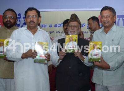 Photo Caption : Minister Dr G Parameshwar with CK Jaffer Sharief, Author Dr Anand Kumar and C Narayanswamy seen releasing the book “Prabuddha†on Congress Leader Mallikarjuna Kharge at Press Club Auditorium, in Bengaluru on Wednesday 20th July 2016