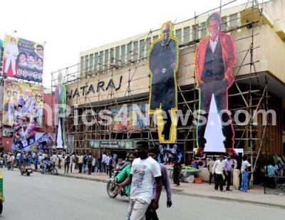 Event Description : Huge Rajinikanth and Kabali Posters Erected in Bengaluru Theatres