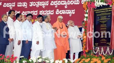 Event Description : Vice President of India Mohammad Hamid Ansari with CM Siddaramaiah, Governor Vajubhai Rudabhai Vala, HD Devegowda, Shri Shivarathri Deshikendra Mahaswamy and others inaugurated the JSS Science and Technology University and unveiled the foundation plaque of the Academic Building, in Mysuru on Saturday 23rd July 2016