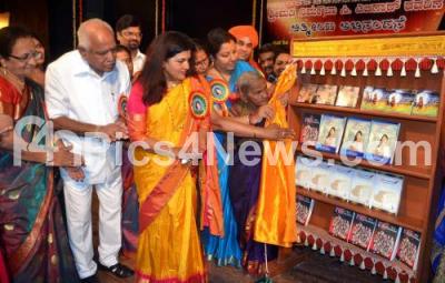 Photo Caption : Sri Basavajayamma Mruthynjaya Swamiji with MP BS Yeddiyurappa, MLC Tara, Vasundara Bhupathi, President, Women Writers Association, Dr Mahesh Joshi, DD, Director and others releasing the "Neenembe", "Gari" books and "Abharana" and "Nirmaladhare" Audio CDs at Ravindra Kalakshetra , in Bengaluru on Sunday 24th July 2016
