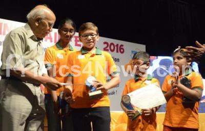 Photo Caption : Padma Bhushan Prof BM Hedge interacting with some of the children who were participated at the inauguration of Brainobrain Karnataka Fest at NIMHANS Convention Center, in Bengaluru on Sunday 24th July 2016