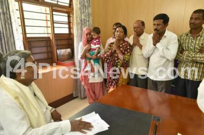 Family members of DYSP Kallappa Handibag from Belagavi, who committed suicide, called on CM Siddaramaiah at Krishna, in Bengaluru on Monday 25th July 2016