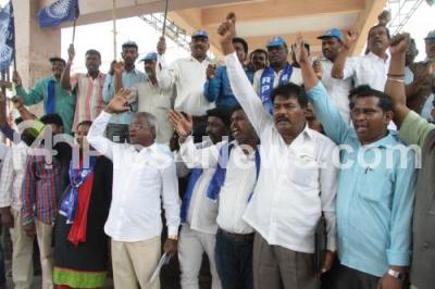 Event Description : Members of Republic Party of India staged a protest in favor of the protesting employees of KSRTC and BMTC at Majestic bus stand, in Bengaluru on Monday 25th July 2016