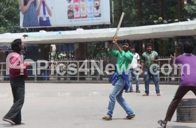 Photo Caption : People were seen playing cricket at the busy Majestic bus stand as the transport services of BMTC, KSRTC were off roads as their employees went on strike for wage hike, majestic and other bus stands were deserted as the busses were not functioning, in Bengaluru on Monday 25th July 2016