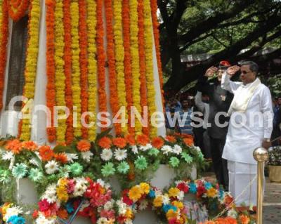 Photo Caption : CM Siddaramaiah with Ganesh Karnik paying homage to commemorate of Kargil Vijay Divas at the National Military Memorial, in Bengaluru on Tuesday 26th July 2016
