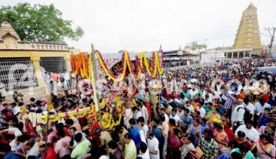 Devotees gathered for the Chamundeshwari Vardhanti Mahotsava atop Chamundi Hill, in Mysuru on Tuesday 26th July 2016