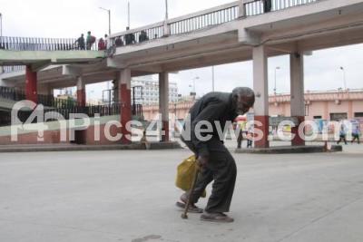 Photo Caption : An elderly man seen stranded at Majestic bus Stand, as the BMTC, KSRTC and others transport unions were on strike on the 3rd day, causing major problems to the daily commuters, in Bengaluru on Wednesday 27th July 2016