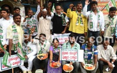 Photo Caption : Members of JDU staged a protest demonstration against verdict on Mahadayi Kalasa Banduri water projects at SBM Circle , in Bengaluru on Thursday 28th July 2016