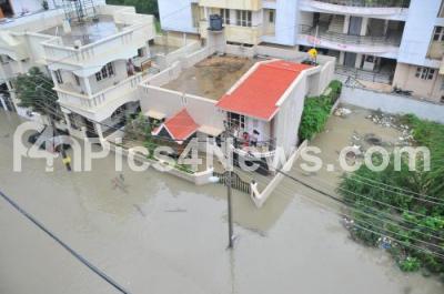 Photo Caption : Arial shot of the flooded roads and houses at Kodichikkanahalli, Bommanahalli, as Benglauru City received incessant rainfall, in Bengaluru on Friday 29th July 2016