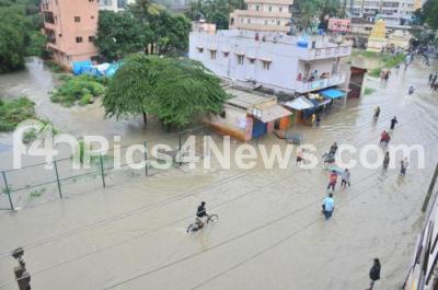 Photo Caption : Arial shot of the flooded roads and houses at Kodichikkanahalli, Bommanahalli, as Benglauru City received incessant rainfall, in Bengaluru on Friday 29th July 2016