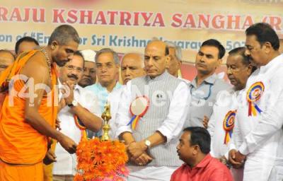 Photo Caption : Union Ministers Rajnath Singh with DV Sadananda Gowda, BJP State President BS Yeddyurappa and others at the inauguration of “Karnataka Raju Kshatriya Association conference at Palace Grounds , in Bengaluru on Sunday 31st July 2016