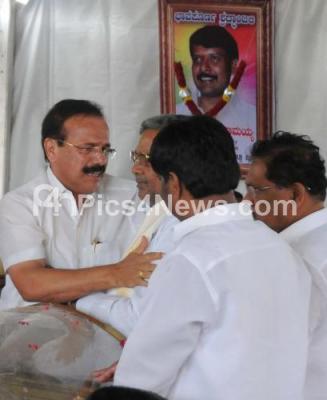 Event Description : CM Siddaramaiah seen mourning to the death of his son Rakesh Siddaramaiah, who died due to multi organ failure at Antwerp University Hospital in Belgium, the body of Rakesh Siddaramaiah was kept for public viewing at the Dasara Expo Grounds in Mysuru, the body arrived in Mysuru by a special flight from Bengaluru, the last rites will be performed at Siddaramaiah farm house at T Katur on the outskirts of Mysuru in the presence of family members, relatives and friends, in Mysuru on Monday 1st August 2016