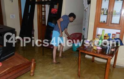 Photo Caption : Water from the over flowing Sarakki lake has been gushing into the houses from last three days, as many residents faced a lot of problems due to excess water inside their houses and on the roads , in Bengaluru on Monday 1st August 2016