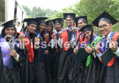 Photo Caption : Students of Reva University seen displaying their gold medals during the 1st annual convocation of Reva University at Rukmini Knowledge Park at Reva University, Yelahanka, in Bengaluru on Thursday 4th August 2016