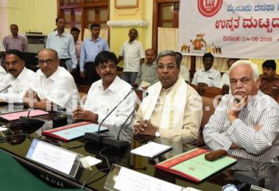 Photo Caption : CM Siddaramaiah with Minister RV Deshpande and others seen at the high level meeting on Mysuru Dasara 2016 Celebrations at Conference Hall, Vidhan Soudha, in Bengaluru on Thursday 4th August 2016
