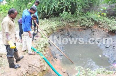 Event Description : BBMP workers seen clearing the sewage water at Kodichikkanahalli, which was recently flooded after Madiwala Lake overflowed, in Bengaluru on Thursday 4th August 2016