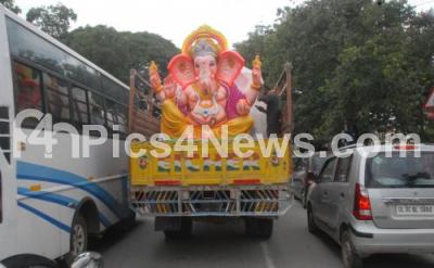 Event Description : Lord Ganesha Idols being transported in a lorry near Town Hall for the upcoming Ganesha Festival, in Bengaluru on Friday 5th August 2016