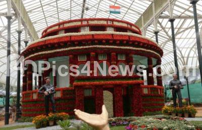 Photo Caption : Parliament house made of flowers being displayed during the inauguration of the Independence Day Flower Show at Lalbagh, in Bengaluru on Saturday 6th August 2016