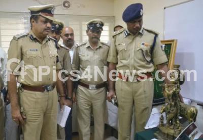 KSR Charan Reddy, Additional Commissioner of Police, West seen inspecting the recovered property during a press conference at DCP North Office, near Yeshwanthpur , in Bengaluru on Saturday 6th August 2016