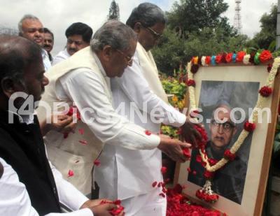 Photo Caption : CM Siddaramaiah with MV Rajashekaran, Minister H Anjaneya and others floral tribute to the portrait of Former Chief Minister Late S Nijalingappa, on his 16th Death Anniversary at Vidhan Soudha , in Bengaluru on Monday 8th August 2016