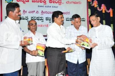 Event Description : Manu Baligar, President Kannada Sahitya Parishat with Prof MH Krishnaiah, Prof G Abdul Basheer and others releasing the book “Kannada Sahitya Parishat Katti Belesida Mahaniyaru” authored by NV Srinivas Rao at Kannada Sahitya Parishat , in Bengaluru on Monday 8th August 2016