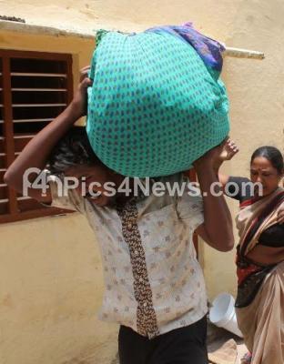 Photo Caption : People seen gathering their belongings and vacating their houses as the BBMP is on demolition drive for encroachment of Rajakaluve at Doddabommasandra, Vidyaranyapura Main Road , in Bengaluru on Thursday 11th August 2016