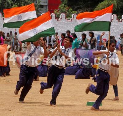 Photo Caption : School students taking part Independence Day rehearsal for the forth coming Independence Day Celebrations at Manekshaw Parade Grounds , in Bengaluru on Friday 12th August 2016
