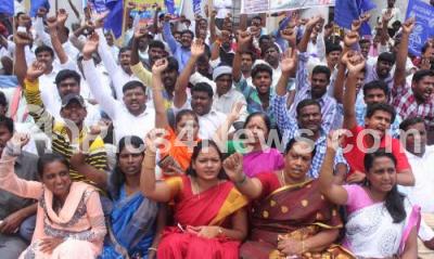 Photo Caption : Members of Dalit Sangharsha Samiti protesting against atrocity on Dalits at Town Hall , in Bengaluru on Sunday 14th August 2016