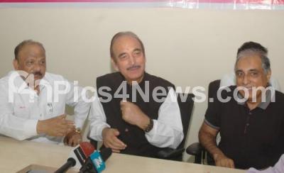 Photo Caption : Senior Congress leader and leader of the opposition in Rajya Sabha Ghulam Nabi Azad addressing media with Roshan Baig Minister for Haj and Urban Development about Karnataka Haj Bhavan in Hegde Nagar , as it will be formally inaugurated on August 27th with first flight of Hajees taking off to Mecca on pilgrimage , in Bengaluru on Sunday 14th August 2016