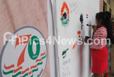Photo Caption : Children seen painting during the “In COLOURS OF FREEDOM†at Metro Rangoli Art centre on theeve of Indian Independence Day , in Bengaluru on Sunday 14th August 2016