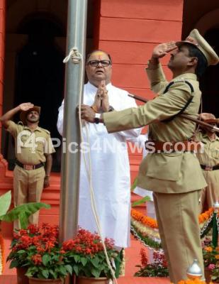 Photo Caption : Chief of Justice of Karnataka Subhro Kamal Mukherjee hosting the National flag during Independence Day Celebrations at High Court , in Bengaluru on Monday 15th August 2016